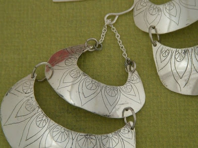I generally don't have an idea in mind when I start a design. I just fiddle around until I come up with a shape I like. I'll cut everything out, apply the resist so the acid doesn't etch everything & stare at my blank little canvas until I decide what I want to do. I generally start over a couple times to get the layout right. It's so hard to draw on such a smooth surface. Since there's no tooth, my burin slides all over the place & I have to touch spots up.
